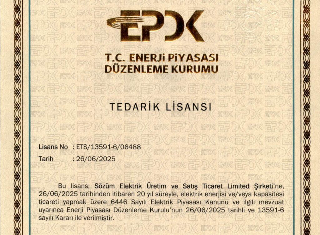 2005 Yılında Sözüm Elektrik’in iştiraki olarak hizmete başlayan Enerji grubumuz, yurtdışında uzun yıllardır tüketicilere hizmet vermekte olan Sözüm Elektrik iş modelini yerinde inceleyerek, ülkemizdeki ticari ve hukuki altyapıya uyarlamak yoluyla Türk tüketicisinin de yabancı rakipleriyle girdi maliyetlerinde rekabet edebilmesine ve kesintisiz kaliteli enerjiye ulaşmasına destek olmaktadır.